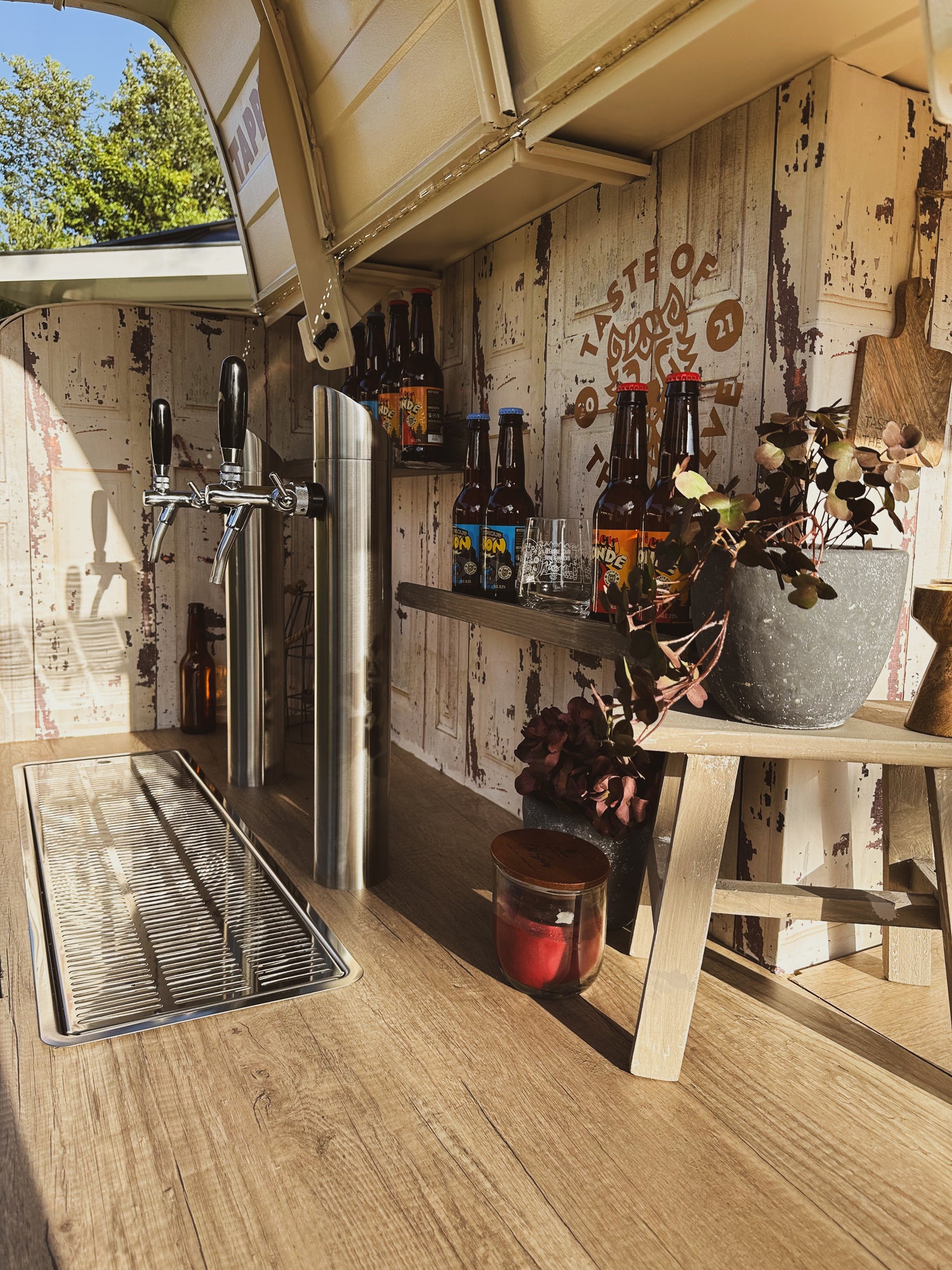 Onze mobiele bar – een sfeervol omgebouwde Piaggio Ape – komt naar je toe, volledig ingericht om jouw feest soepel en gezellig te laten verlopen. Met tapinstallatie, personeel, glaswerk en gekoelde drank. Of je nu met 20 of 120 gasten in de tuin staat, wij regelen het.